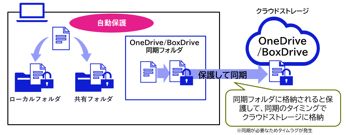 ※OneDriveまたはBoxDrive内の保護されたファイルの閲覧はクライアントPCの同期フォルダからファイルを開いて行います。OneDriveの「オンラインで表示」やBoxDriveの「Box.comで表示」など、ブラウザによるファイルの閲覧はできません。
