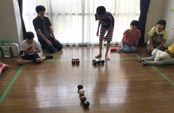 放課後デイサービス事業を行っている事業所で、障がい者の方も健常者の方も一緒になって楽しむ「インクルーシブスポーツ」としてボッチャ体験会を開催しました。当日は、発達障害のお子さんが支援員の方のサポートを受けながら、ボッチャの団体戦を実施。意外なプレーや逆転劇など大いに盛り上がりました。ボッチャは、ルールが簡単ですぐに覚えることができますし、思わぬプレーも出て非常に盛り上がる競技です。今後は、小学生から高齢者まで幅広い方々を対象に、いろいろな活動の場面でボッチャの普及活動に取り組んでいきたいと思います。