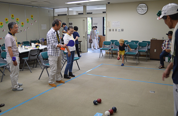 シニアの学び舎であるレイカディア大学の大学祭にて、ボッチャ体験会を実施。パラリンピックの正式種目であること、障がい者だけでなく、子どもや老齢者にも簡単に楽しめるスポーツであることを紹介しました。来場者のみなさんは、最近のテレビ報道などでボッチャの存在は知っていても、経験するのは初めての方が多く、ゲームの楽しみ方を理解してもらう良い機会となりました。毎年、レイカディア大学内で全校生を対象としたニュースポーツ大会というものを実施しているのですが、ボッチャを新種目として追加することを検討し、ボッチャを普及させる機会を設けたいと思います。