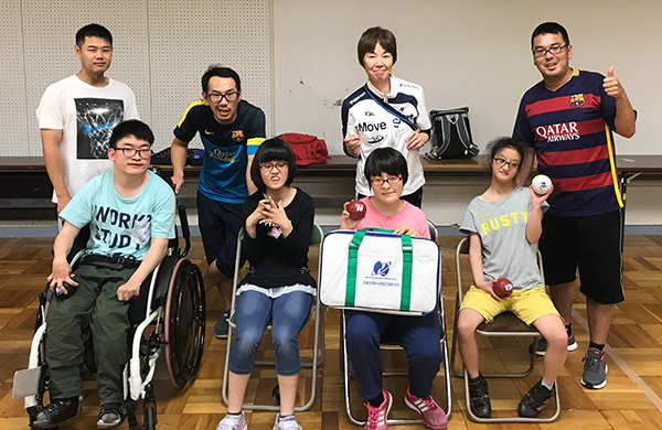 - 以前からずっと、さまざまな障害をもつ生徒全員でボッチャがしたいと思っていましたが今回の授業で実現できました。(講師 陣之内 朝香さん)