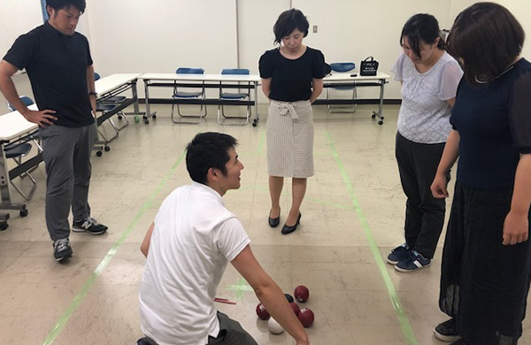 県庁内で部員を募り、ボッチャ部の練習会を実施しました。ほとんどの人がボッチャのボールに触るのも初めてという状況でしたが、途中からは、どうやってジャックボールに近づけるかの作戦会議がはじまるなど、一気にボッチャ熱の高まりを実感。ボッチャの楽しさや奥深さに魅了され、パラリンピック競技に触れる機会が少なかった私たちにはうれしい驚きでした。今後は、定期的な練習を行うことでボッチャのファンを増やし、職場対抗などレクリエーションの要素を交えながら楽しくボッチャを広められればと考えています。また、将来的には職場以外のチームとも交流できればと思っています。