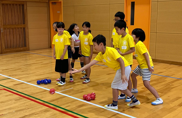 熊本大学教育学部附属小学校の生徒さんに向け、ボッチャ体験会を実施しました。ボッチャの概要を説明したあとに、実際にボールに触れてもらい、その後チームに分かれてゲームをプレーしました。小学生はルールを覚えるのが早く感心しましたが、チームプレーの良さにもとても驚きました。期待以上にボッチャに興味をもってくれた生徒さんのために、次回は熊本ボッチャのアスリートを連れてくることを約束して、体験会を終了しました。今後もいただいたボッチャボールをもって、どこでも誰とでも出来るスポーツを推進していこうと考えています。
