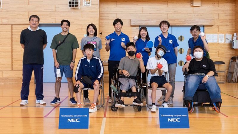 NECでは、「全国ボッチャ選抜甲子園」や車いすテニス大会の協賛、また全国各地でのパラスポーツ大会開催など、さまざまなパラスポーツの推進活動を行っています。NECグループのPurpose(存在意義)である、誰もが人間性を十分に発揮できる持続可能な社会の実現を目指して。国籍や年齢や性別、障がいの有無などに関わらず、誰もが夢を抱き挑戦できる環境づくりのために、NECグループは今後も引き続き、パラスポーツ推進活動に取り組んでいきます。