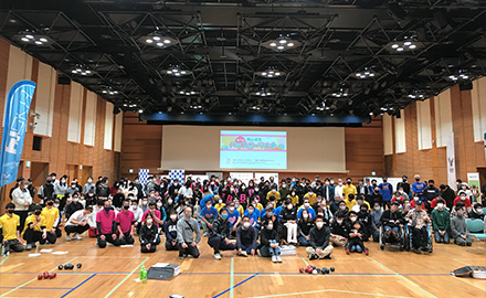 障がい者、健常者の区別なく誰でも参加可能なパラスポーツ大会を初開催しました。当日は、特別支援学校の生徒やプロスポーツ選手、パラリンピアン、会社員、自治体職員等の様々な方々に参加していただき、パラスポーツを通じた交流が生まれ、「パラスポーツ大会」の礎を築きました。