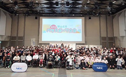 2021年3月、岡山県で第1回パラスポーツ大会を開催しました。地元の団体などで構成される実行委員会を中心に大会運営を遂行しました。また、過去のパラスポーツ大会でも最大チーム・参加者となる38チーム・178名に参加を頂き、協賛・協力も合計23社となりました。