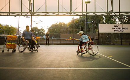NECは、「誰もが夢を抱き、挑戦できる社会」の実現を目指し、30年以上にわたり、 車いすテニスを応援してきました。