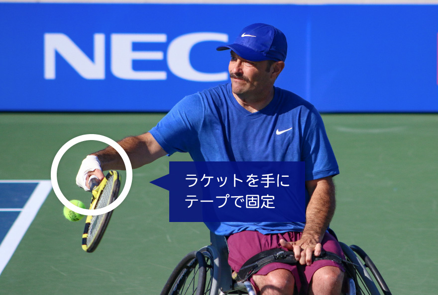 クアードは四肢麻痺という意味で、このクラスには男女の区別がなく、ラケットと手をテーピングで固定することや、電動車いすの使用が認められています。