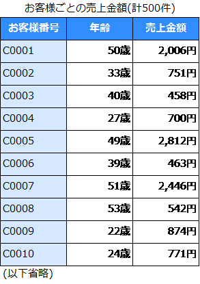 さて、いきなりデータの話となりますが、みなさんは下記のようなデータを見たときに、初めにどのようなグラフを作成するでしょうか。