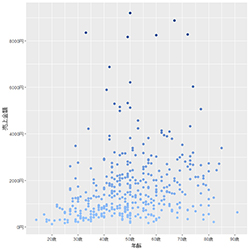 ビジュアライゼーションとして、最も強力で使いやすいグラフは散布図です。「数値データ」×「数値データ」のデータであれば、まずは散布図を作成することをお勧めします。散布図は全てのデータ(1万件以上になると可視化性能は下がりますが)を目視確認することが出来る、強力なグラフです。