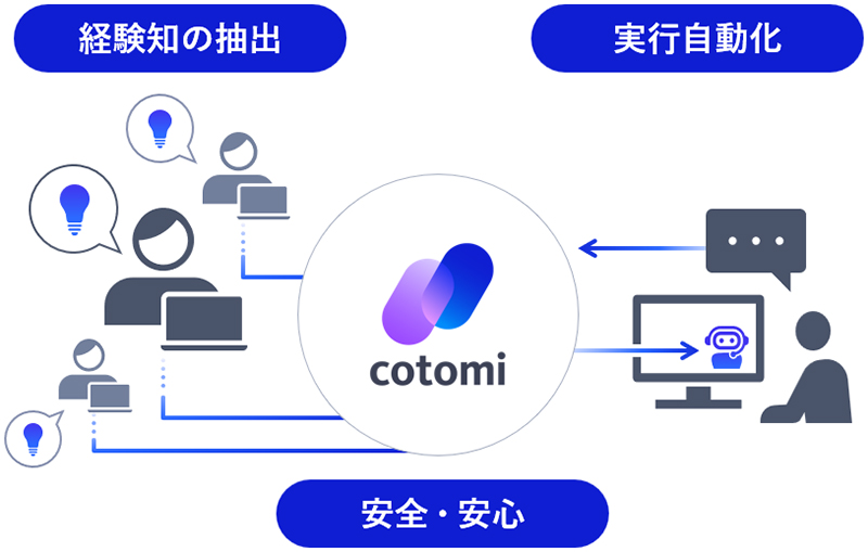 cotomi Actは、個人に散在する「経験知」の自動抽出・組織資産化により業務の圧倒的効率化を実現します。