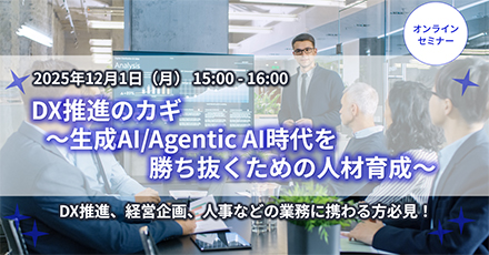 近年、デジタルトランスフォーメーション(DX) の社会実装・活用が急速に進み経済がデジタル化する中、世界的にDX人材の不足が大きな問題となっています。NECは、デジタル時代に必要となるDX人材育成をワンストップで支援します。IT企業や企業のIT部門だけでなく、事業会社・自治体・大学など、幅広く対応。経営層向け、DX推進人材向け、DX専門人材向け、一般社員向けの充実した人材育成メニューをラインナップ。現場経験豊富な一流の技術者(データサイエンティストなど)が講師となり、即戦力となる人材を育成します。
