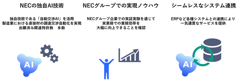 - ①NECの独自技術「自動交渉AI」を活用