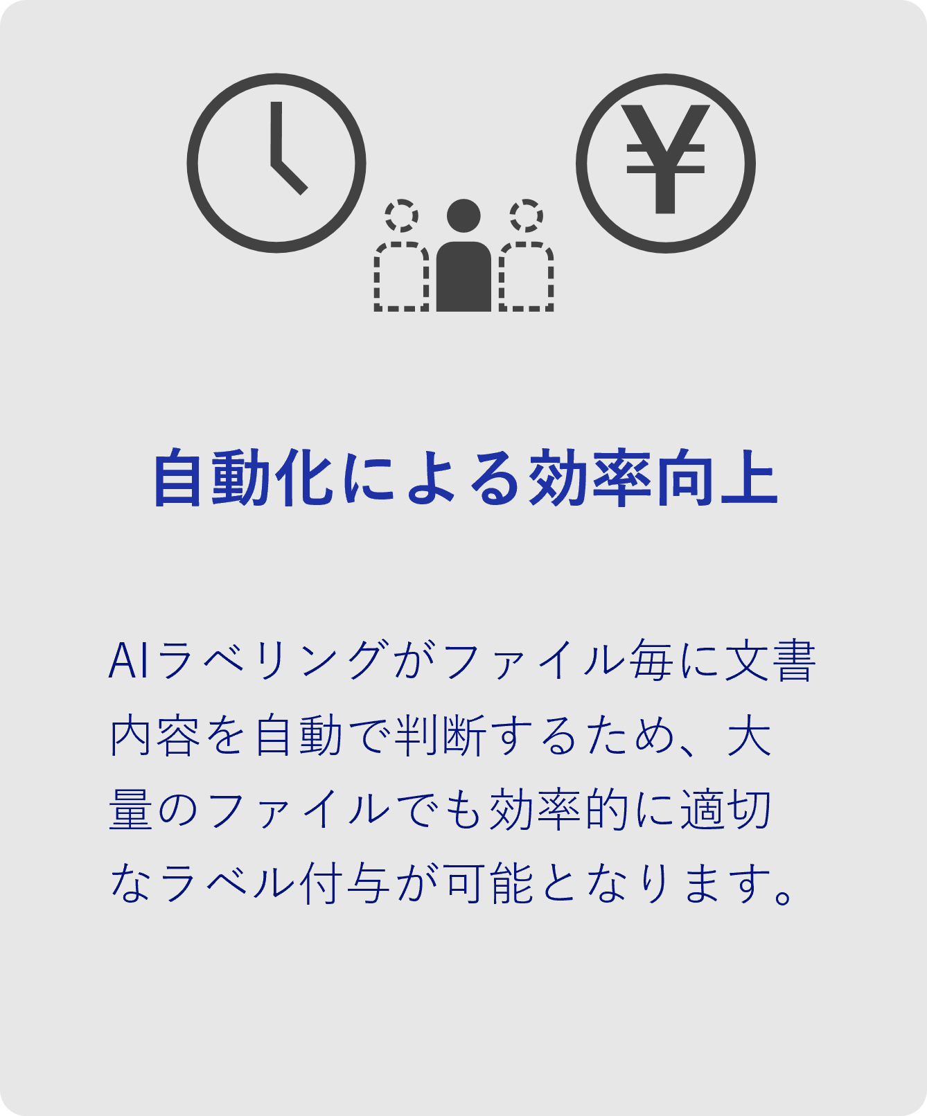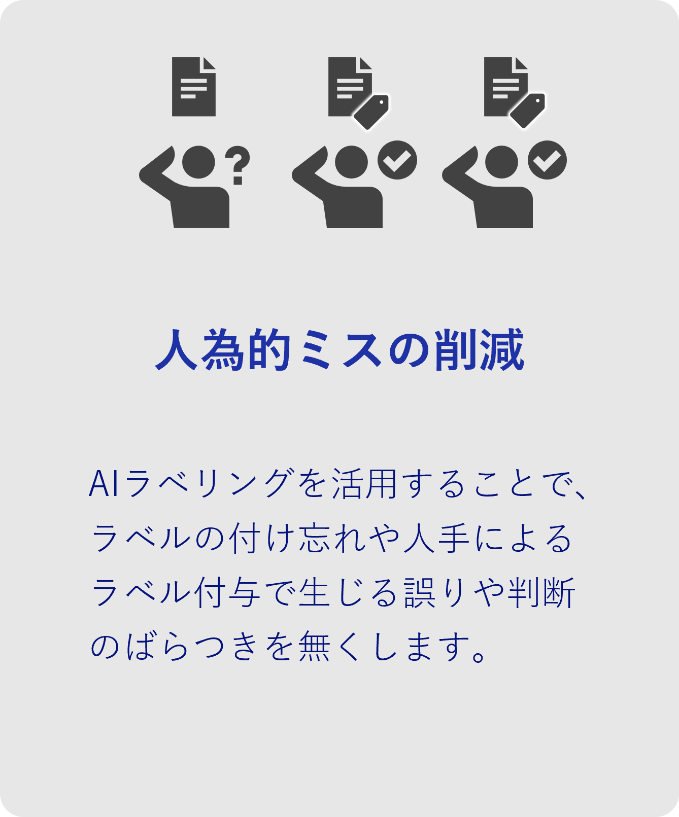 AIラベリングを導入することで、現場での手作業によるラベル付与の負荷を大幅に軽減し、業務の効率化を支援します。