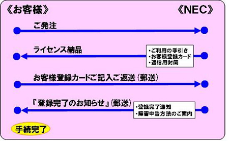 | 保証終了 | 保守対象機器のお客様ご購入日より起算して、ご購入いただいたネットワーク保守ライセンスに規定されたサポート期間(3年・4年・5年。 ライセンス種別により異なります)満了の日まで。 サポート期間満了後は、延長キットを購入いただくことにより、さらに1年の期間延長の道が開かれています。 (延長キットは、NECがその販売を中止するまで、繰返し購入できます) なお、ネットワーク保守ライセンスの種別(サポート期間)、サポート対象機器のお客様ご購入日の如何にかかわらず、NECがその機種の新規受注を終了していた場合、NECの当該機種受注停止日から5年を超えて以降のサポートサービスは受けられません。 | |