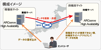 Arcserve Replication / High Availability は、業務データを自動的に遠隔地へ複製し、万一の災害や障害によるデータ全損を回避します。遠隔地や待機系サーバ側の複製データを利用した事業継続を実現することができます。