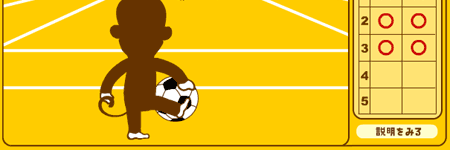 ドラッグした赤い印を離すと、バザールがボールを蹴ります。