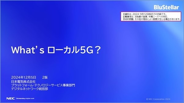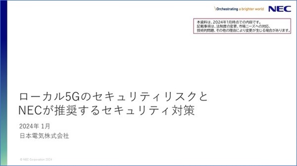 今般、市場動向やNECの取り組み等を見直して改版いたしました。5G、ローカル5Gの基礎知識・特徴・違いについてもご説明させていただきます。