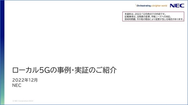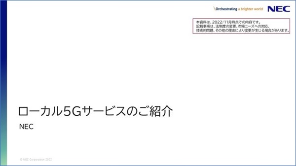NECが提供しているローカル5Gサービスの一覧資料です。