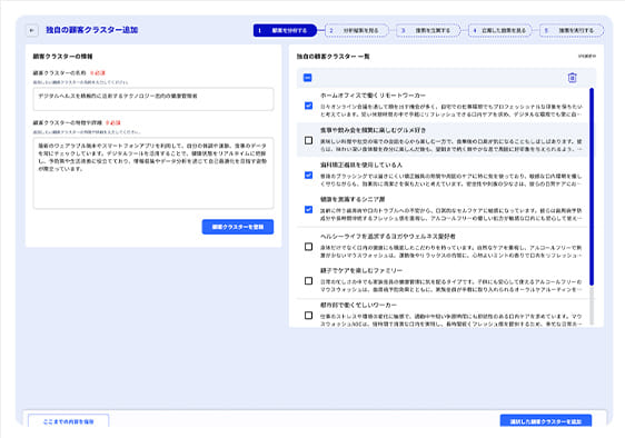- 商品の特徴など簡単な情報を入力するだけで幅広い施策を提案