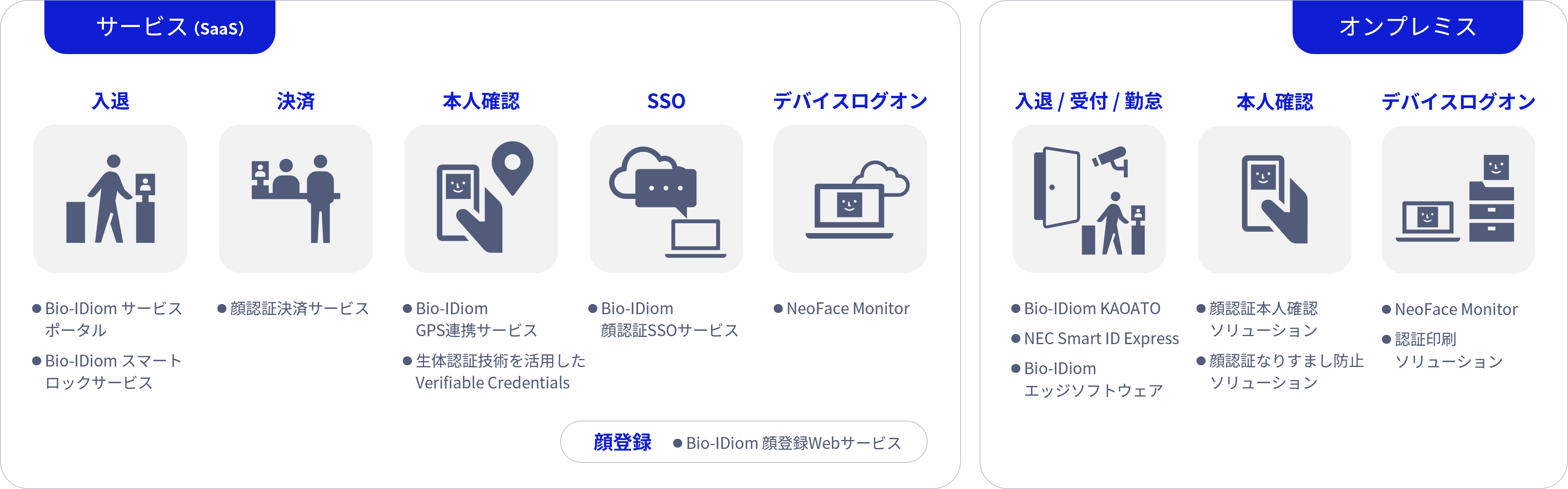 お客様による開発の不要がなく、すぐに利用が可能なNECの生体認証技術を活用したアプリケーション、ソリューション。