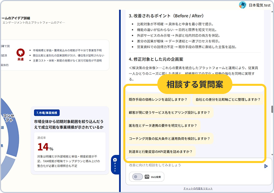 企画書の内容を“文脈理解”した上での高度な壁打ちができる