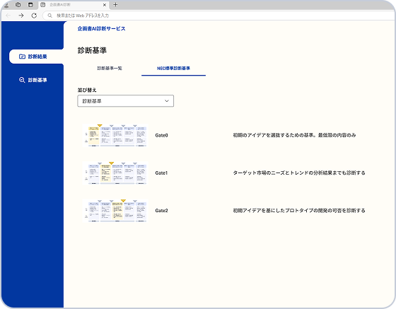 NEC標準の基準に加え、社内コンテストや部門特有の診断基準を柔軟にカスタマイズ可能。