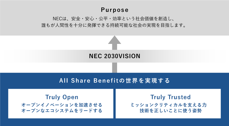 NECは「Truly Open, Truly Trusted」をCEOメッセージとして掲げ、企業活動を推進していくことを広く宣言しました。