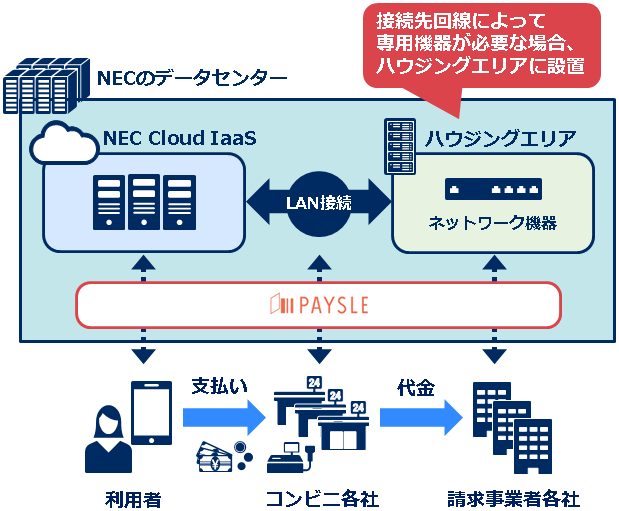 クラウドに加え併設するハウジング環境も活用することにより、各種コンビニや請求事業者との多様なネットワーク接続要件に対して、柔軟に対応が可能となる環境を構築できた。