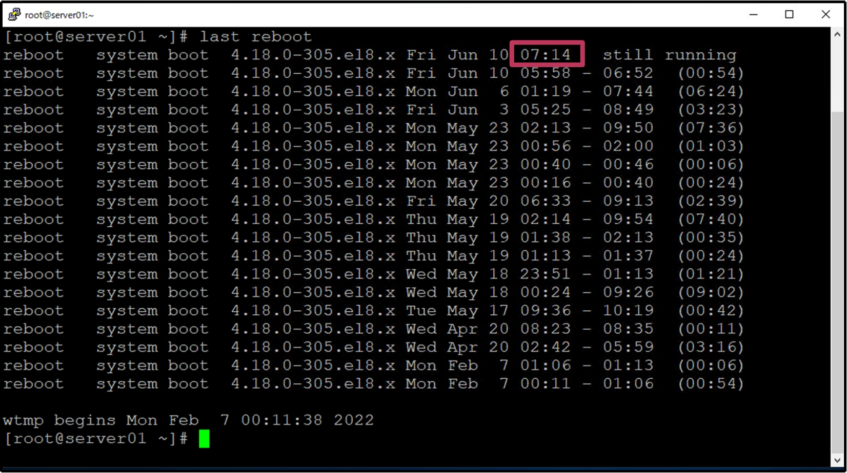 Linuxは以下のコマンドを入力してサーバーの起動時間を確認します。