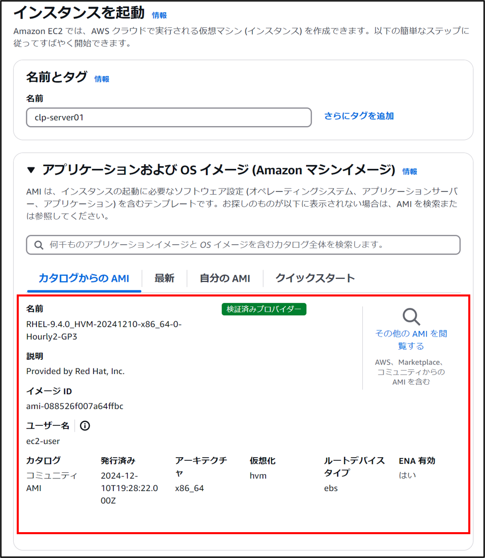 以下はLinux OSとしてRed Hat Enterprise Linux 9.4(以降、RHEL)を選択した例です。