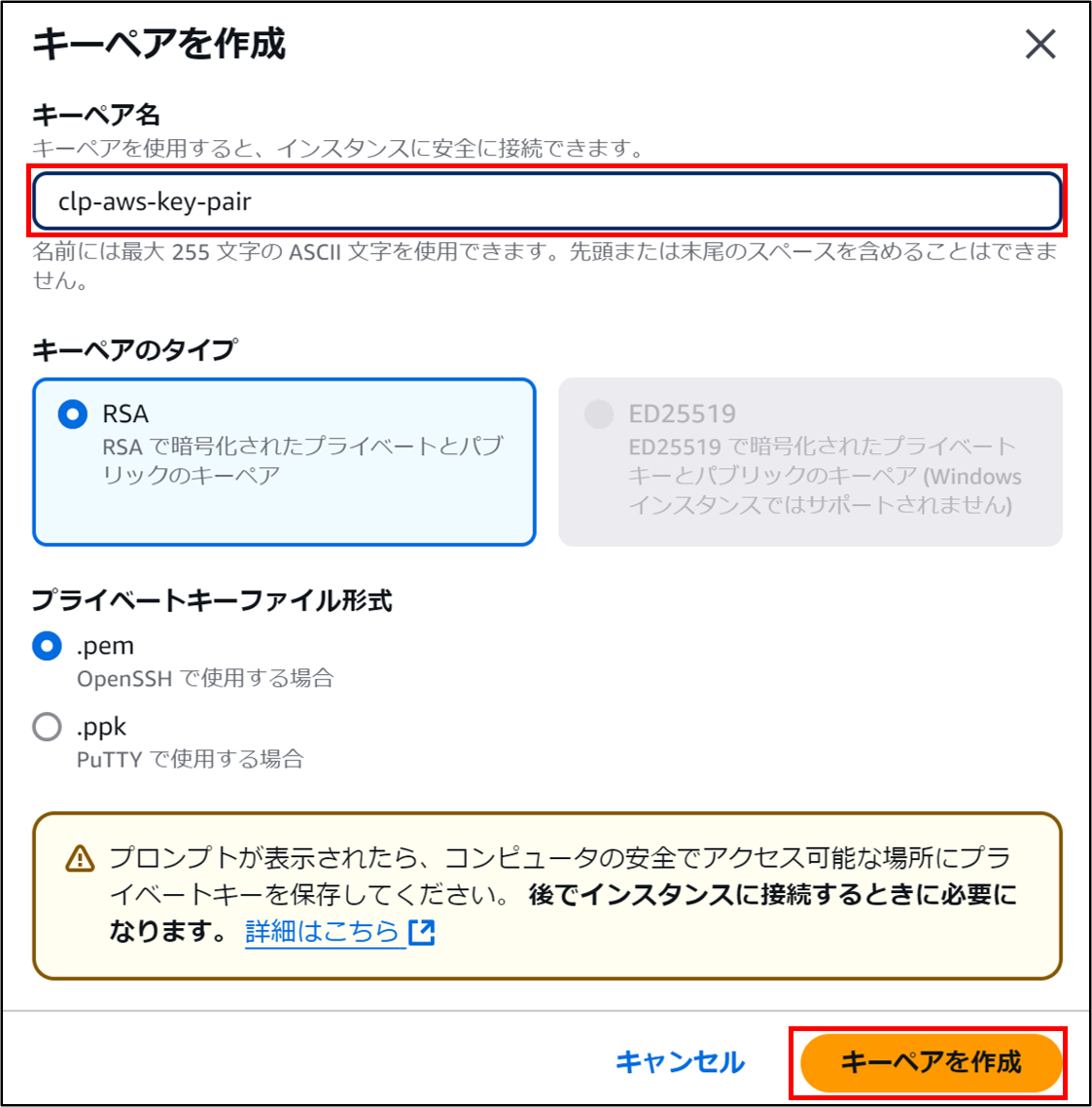- ※RHEL 9等の比較的新しいLinux OSではRSA形式のキーペアは利用できません。
