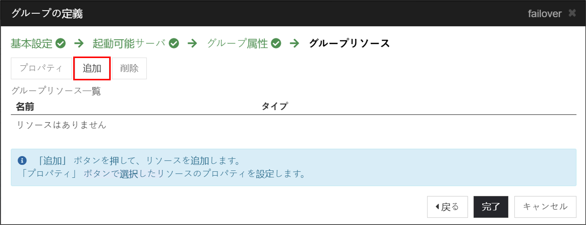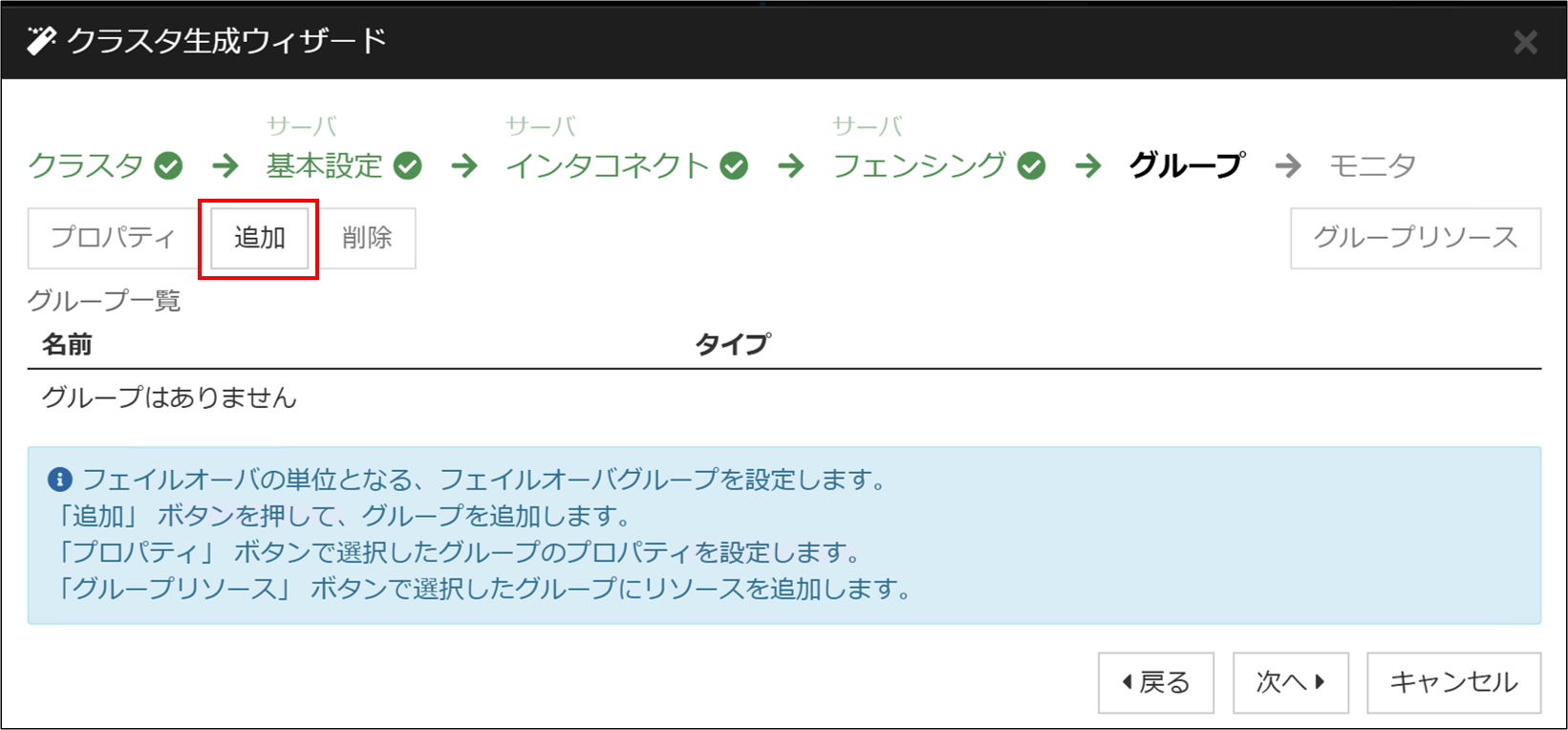 フェールオーバーグループを追加します。[追加]をクリックします。