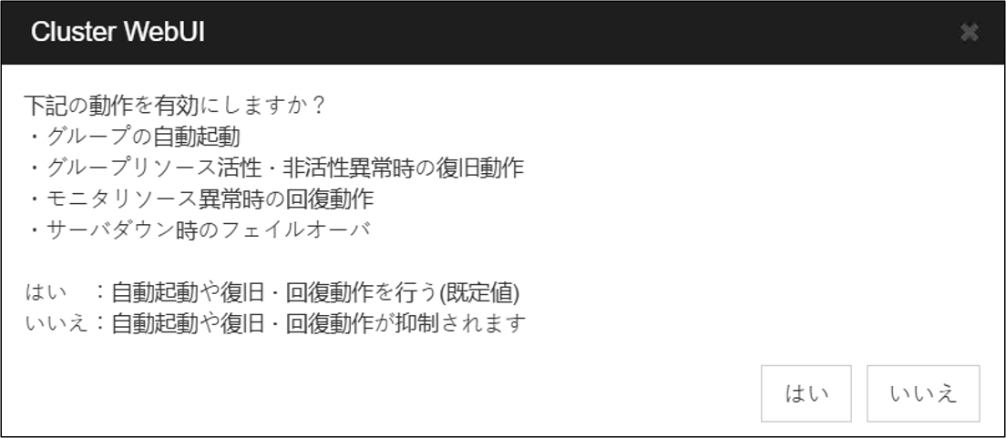 自動起動や復旧・回復動作の設定ポップアップが表示されます。[はい]をクリックします。