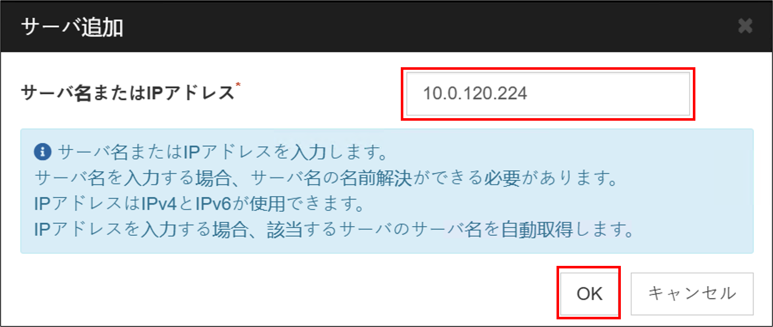 HAクラスターを構成する相手サーバー(clp-server02)のIPアドレスを追加し、[OK]を選択します。