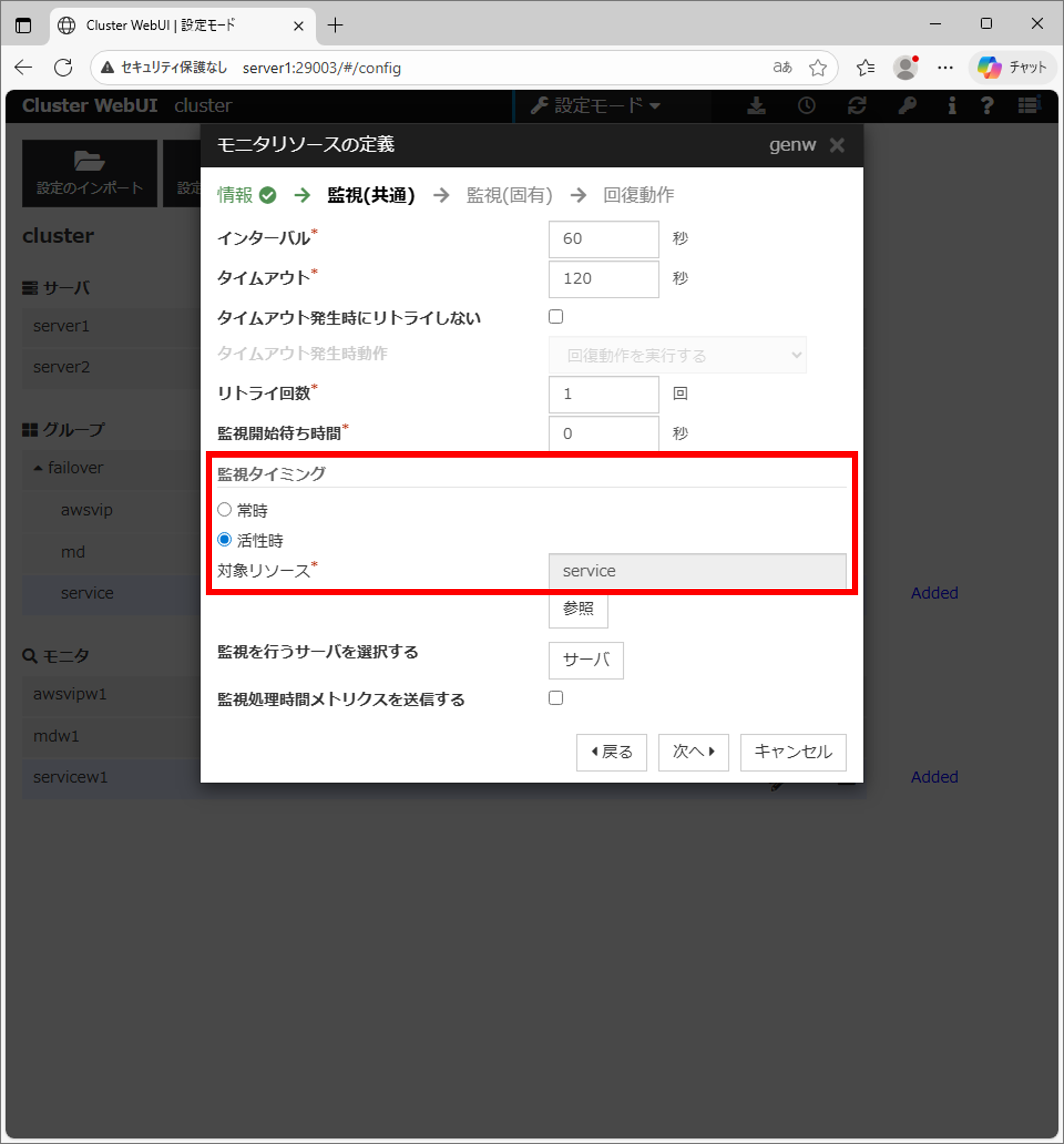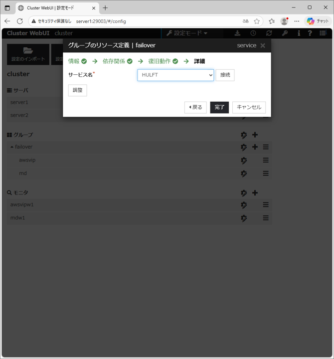 リソースの追加が完了したら、設定の反映を行いフェールオーバーグループを起動します。