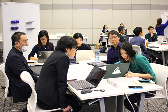 3月21日夕方、都内の会議室でNECのプロボノメンバーが集まっていた。モニターには支援先団体の営業資料が映し出され、改善点を話し合う。