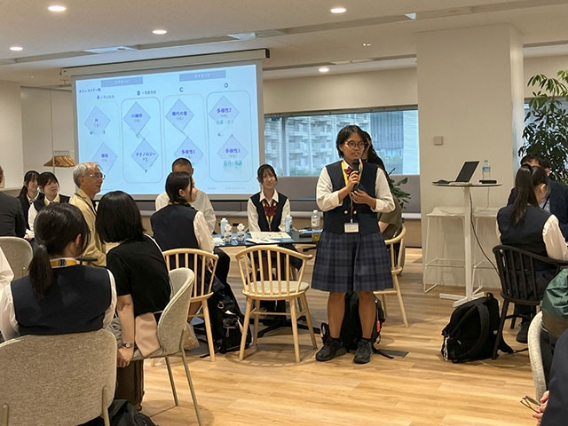 その後の授業では、前回の気づきをもとにアイデアを上げ、フォローアップでは、各グループが改善したアイデアを発表。数週間前からの大きな進化に、社員も大いに驚かされました。テーマの自分ごと化、課題の深堀り、柔軟な発想をもとにした解決策——自信をもって発表する姿も素敵でした。