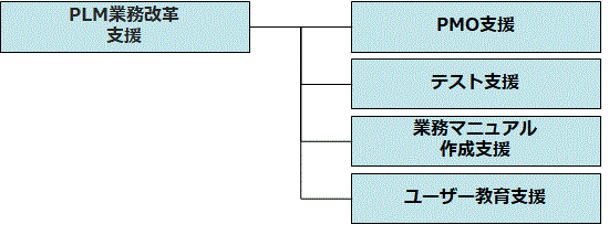 PLM業務改革支援サービスは、PJ全体を管理するPMO支援、システム品質に大きく貢献するテスト支援、円滑な現場へのシステム導入を実現する業務マニュアル作成支援とユーザー教育支援といったサービス群となっています。これらサービスにて、お客様の業務改革担当者をご支援し、改革スピードの加速を実現します。