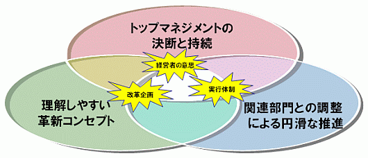 - 改革の全体像や関係部門のモチベーションアップ、経営者の投資意思決定を促進をねらいます。