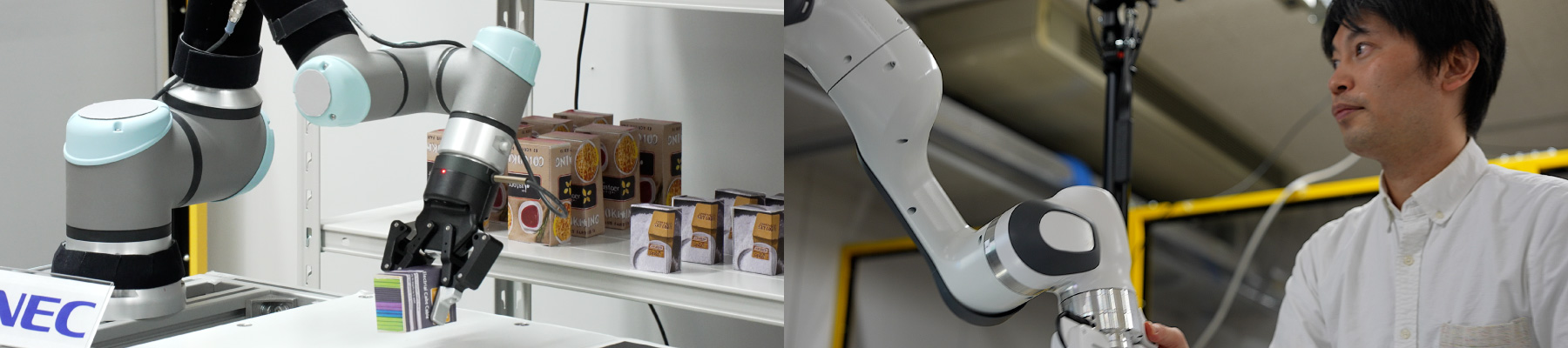 ロボット活用によって効率化をすすめる、と言うと「何をいまさら」という感じがしますが、実社会でのロボットの導入は、かつて想像したほどには進んでいません。それは、ロボットは「同じ作業を正確に高速で繰り返すこと」は得意なものの、人間のように状況に合わせて「柔軟に対応すること」は苦手だからです。この課題を解決しようと、NECの研究者が取り組んでいるのが制御AI(人工知能)の開発です。