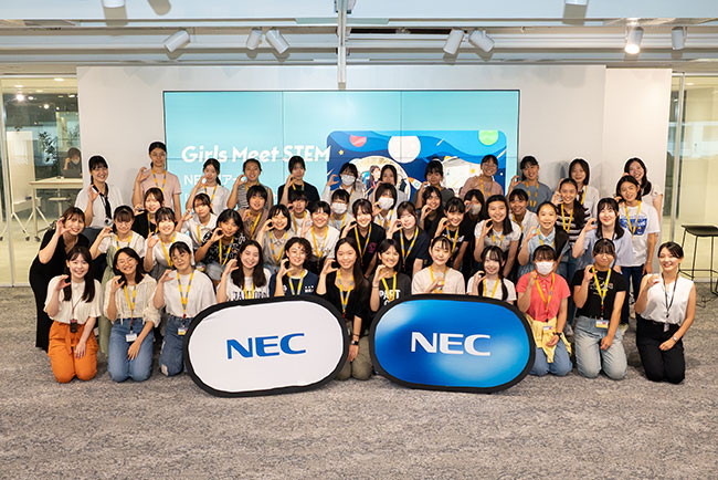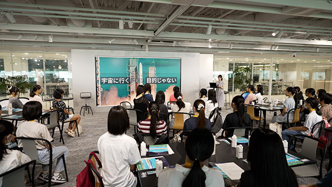 8月21日、東京・港区のNEC本社で開かれた「Girls Meet STEM」の一場面です。山田進太郎D&I財団が企画するこのプログラムにNECは2024年の開始当初から参画。約40人の学生が集まった8月のプログラムで、NECから登壇したのはエアロスペース・ナショナルセキュリティビジネスユニットの女性社員3人です。半世紀以上日本の宇宙開発を支えてきたNECでは、宇宙事業の拡大とともに活躍する女性も増えつつあります。