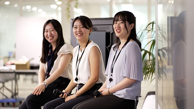 自己紹介も兼ねた前半で、営業を担当する榎本 菫は「将来どんな衛星があったらみんなの役に立つかを考えるのが面白い」と仕事の魅力を紹介。入社2年目でNECの人工衛星ASNARO-2の管制を担当する田之上 菜美は「安全・安心な暮らしを宇宙から見守る仕事にやりがいを感じています」。同じく入社2年目、宇宙で動く機械の設計などを担当する立川 璃子は「未来の『あたりまえ』を創れる可能性があるのが楽しい」と話しました。