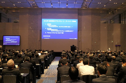 NECでは、重要調達取引先を対象に戦略サプライチェーンパートナー交流会を毎年開催し、NECのサステナブル調達活動における人権・労働、安全衛生、環境、情報セキュリティについて理解と協力を求めています。また、交流会ではサステナビリティへの取り組み推進において特に貢献度の高い調達取引先に「サステナビリティ表彰」を授与しています。