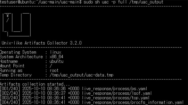 UACとは、インシデントレスポンス(IR)およびファストフォレンジックで必要な証拠となるデータを収集するツールです。軽量なシェルスクリプトで動作し、Unix系のアーティファクトの収集を自動で行います。