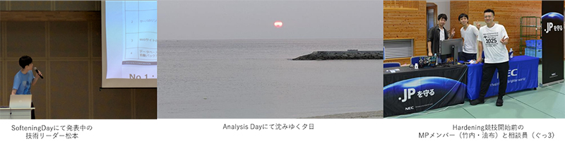 NECのMPサービスは毎年アップデートを重ねており、ハードニング競技参加者がよりよい学びを得るために試行錯誤しています。OSSで活用可能なElastic SecurityのSIEM基盤を活用することで、昨年度よりは迅速な検知につながったと思います。しかし、まだまだ改善点は残っています。今年のハードニング競技参加者からも様々な意見をいただき、次回はより快適なサービスを提供できるよう取り組んでいきたいと考えています。(竹内、油布)