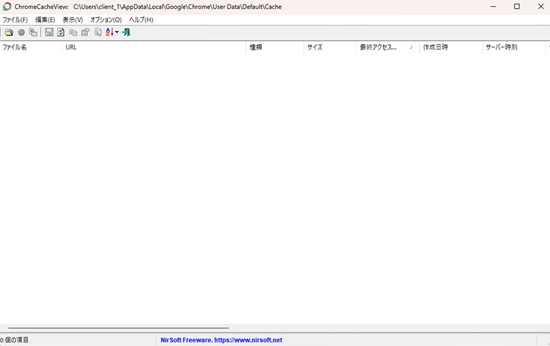 ChromeCacheViewとはGoogle ChromeなどのChromium系ブラウザが保存するキャッシュファイルを一覧表示し、その内容を確認・抽出できるツールです。URLやコンテンツタイプ、最終アクセス時刻、サイズといった情報をGUI上で確認できます。