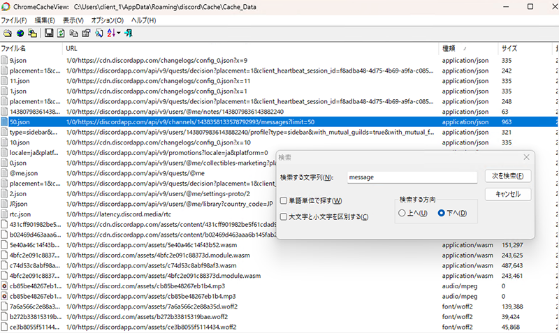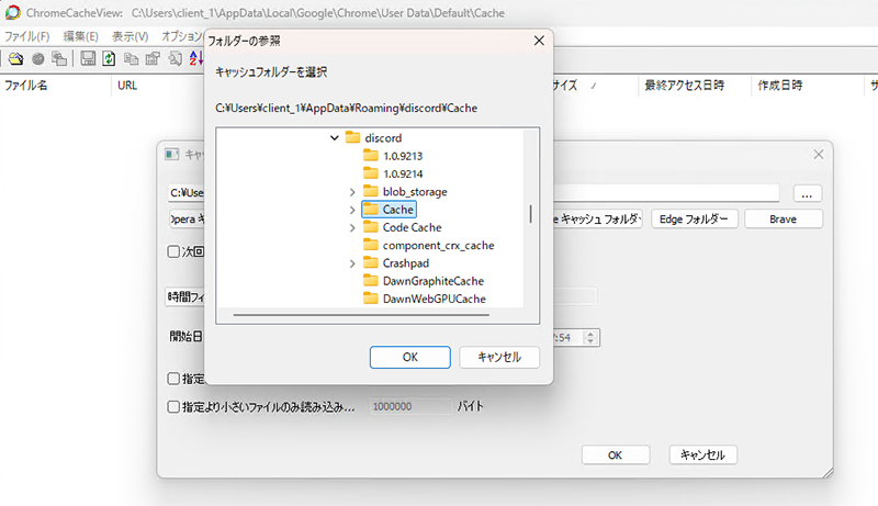 C:\Users\client_1\AppData\Roaming\discord\Cache\ - 2.ChromeCacheViewで当該フォルダを開く