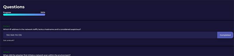 Q2. When did the attacker first initiate a network scan within the environment?
