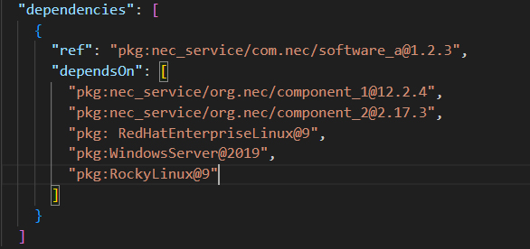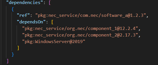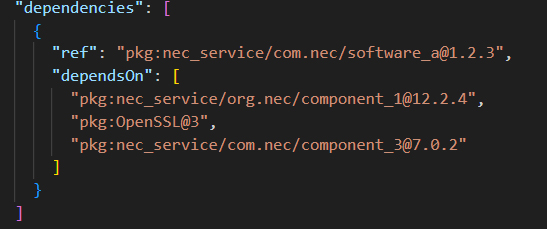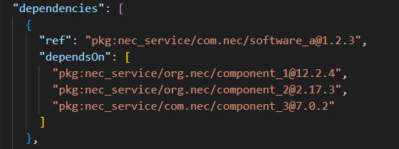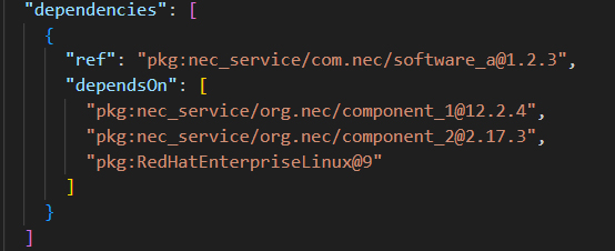- ソフトウェアA:pkg:nec_service/com.nec/software_a@1.2.3