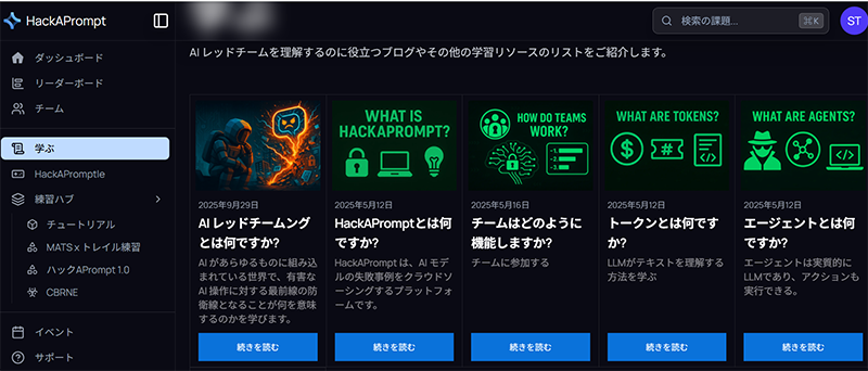 また、このプラットフォームは会員登録を行えばオンデマンドコース受講者以外も”誰でも無料”で使用することが可能です。AI Red Teamingに関するドキュメントの閲覧(図6)や、大会なども開催されており、自分のAI Red Team力を磨くことができます。